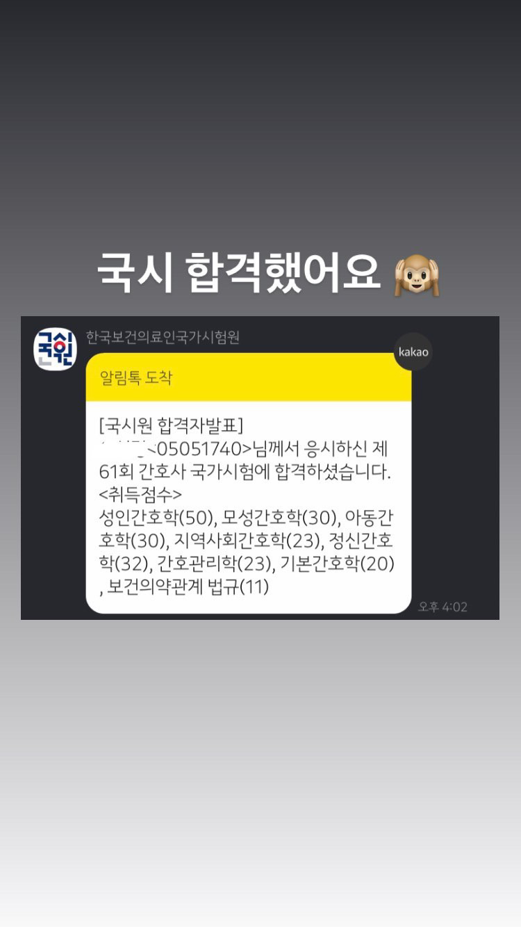 내가 간호사 국시 시험볼 때는 코로나19로 학교에서 자습을 못했어.