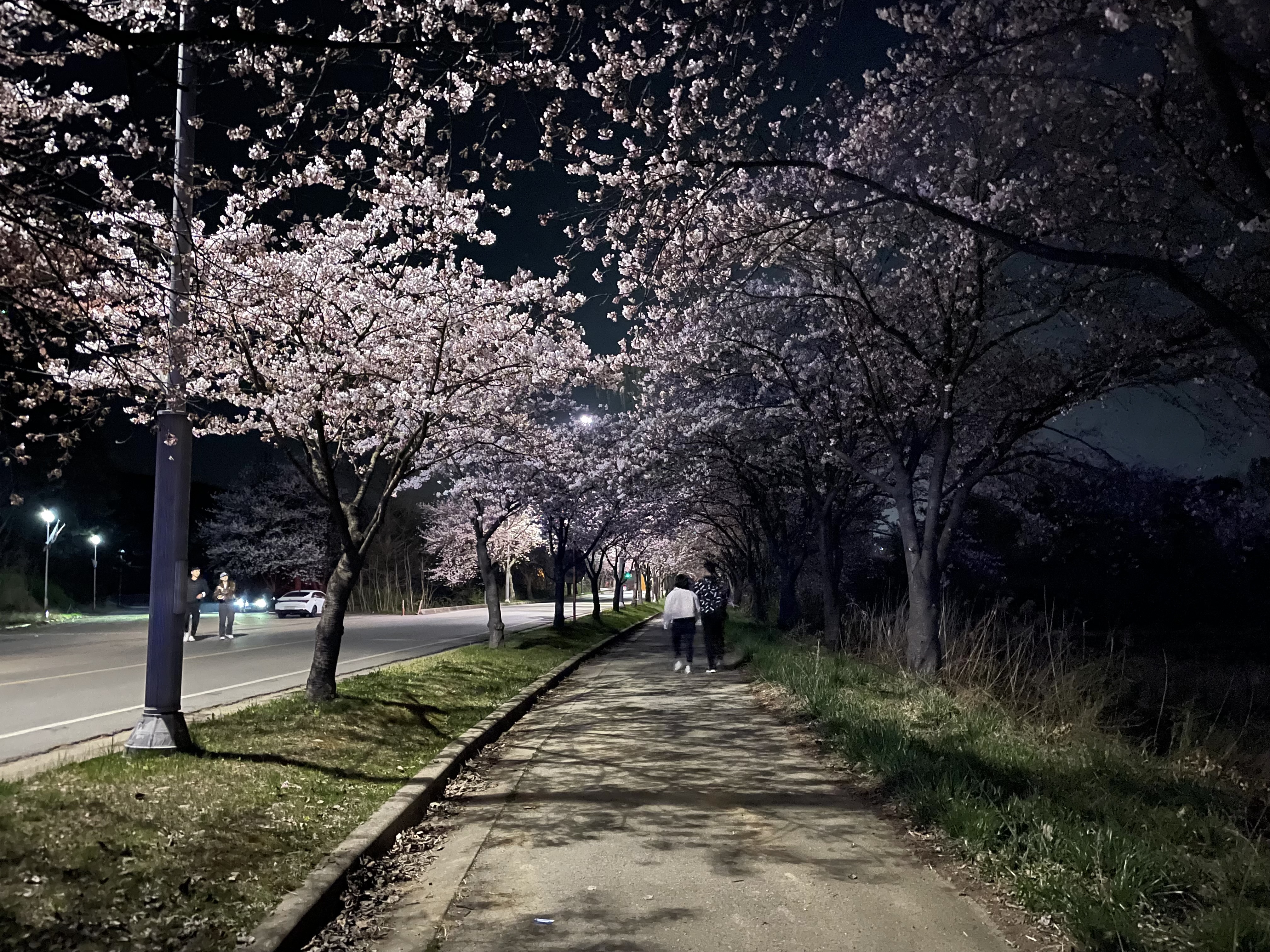 낮에는 사람이 너무 많기도 하고 퇴근 후 남편이랑 함께 가서 밤에 벚꽃 구경을 다녀왔어요.