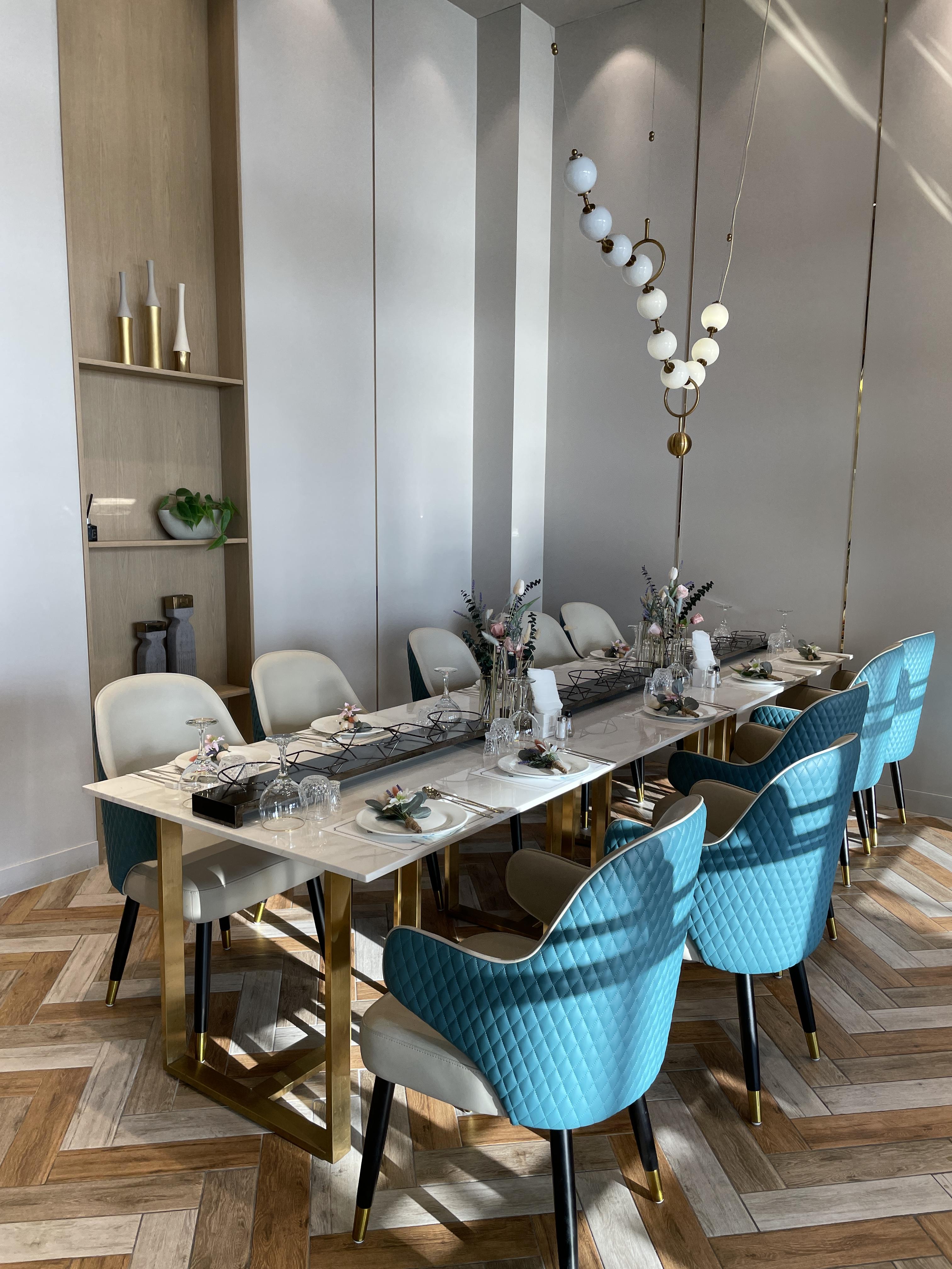 다른 연회장과 달리 한정식과 세미뷔페로 구성이 되어 있고, 신랑,신부와 혼주 분들 식사자리가 유리벽으로 공간이 나뉘었지만 탁 틔어 있었어요. 하객석도 깔끔하고 의자가 일단 불편감 없이 앉을 수 있어 보였어요!